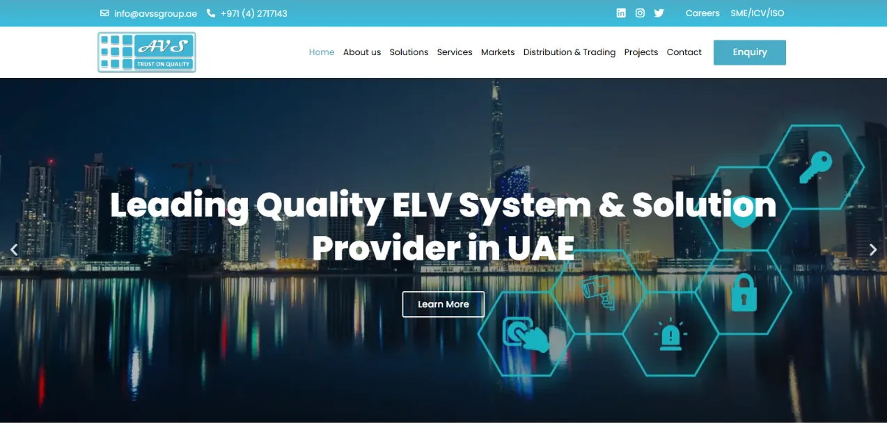 Avaya Dubai website homepage designed by Nikhil Soman, freelance WordPress developer in Trivandrum and Kochi.